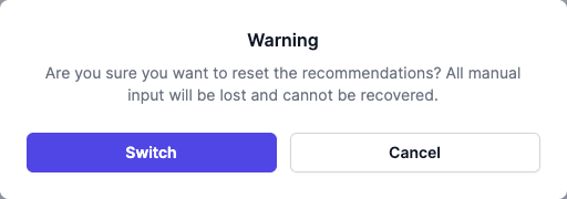 When switching from Manual mode with custom text, a confirmation dialog will appear to prevent accidental loss of your customisations.