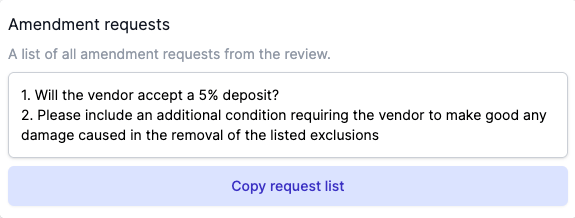 - Use the "Copy request list" button to copy all amendment requests to your clipboard