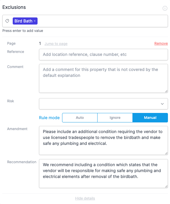 - If a rule is triggered, the automatic text is provided as a starting point